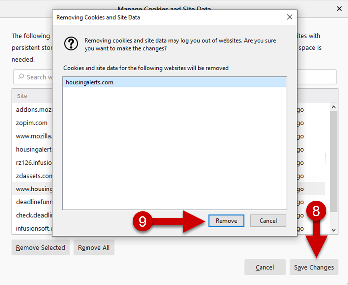 To clear HousingAlerts cookies & cache from your Google Chrome or Firefox browsers is a pretty easy thing to do.