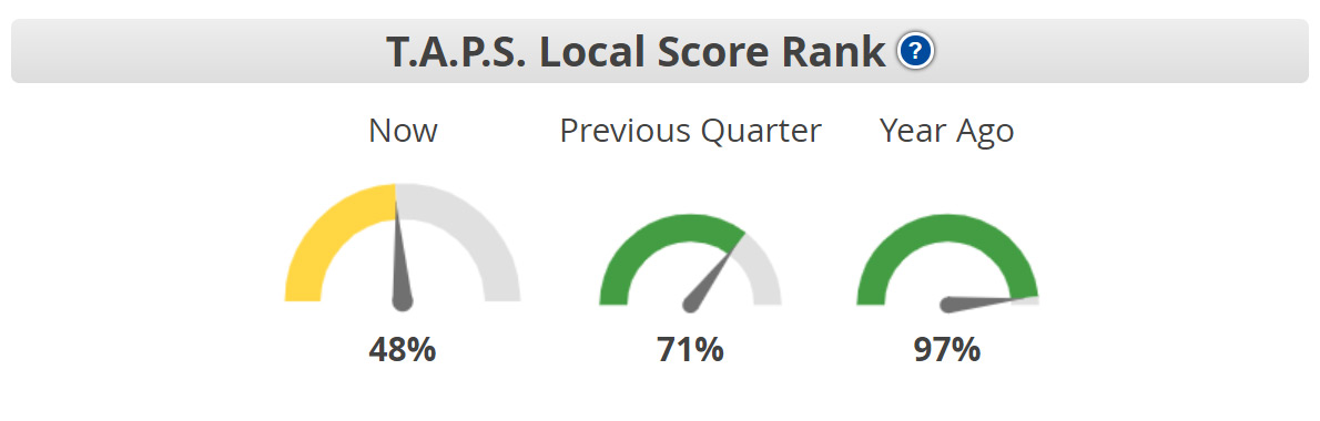 TAPS – Local Score – This is the Technical Analysis Point Score ranking for ONLY that particular city. It ignores any impact State, Regional or National market TAPS scores may have on the local market.